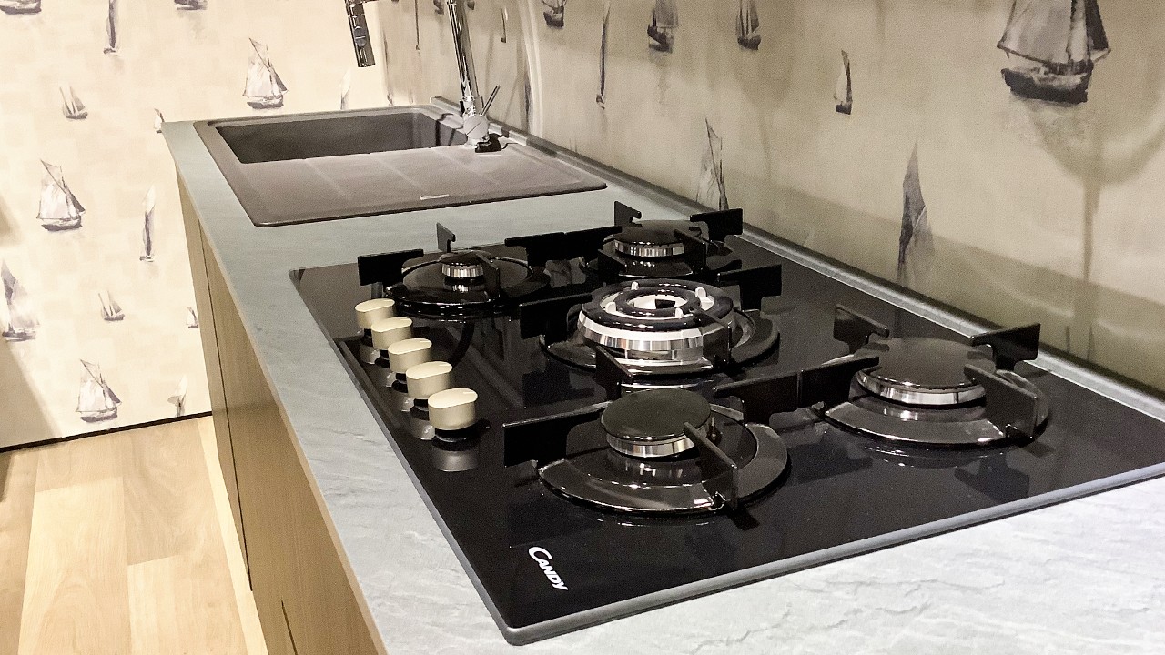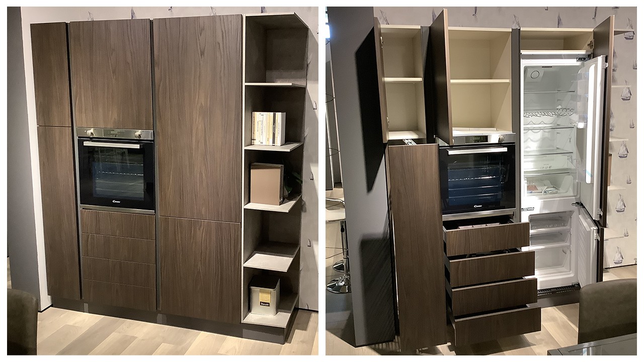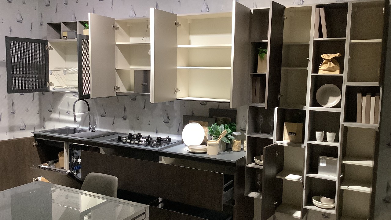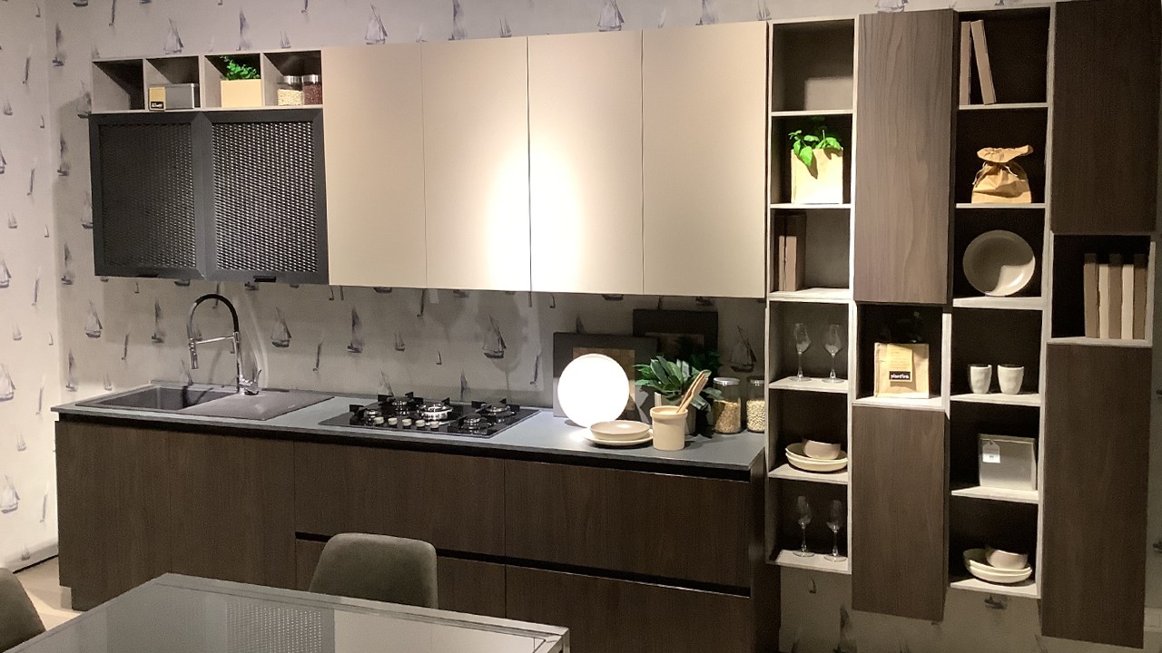 Disponibile all'interno dello Store di Cerignola (FG) cucina modello Zen firmata Mobilturi nelle finiture noce scuro e corda opaco.