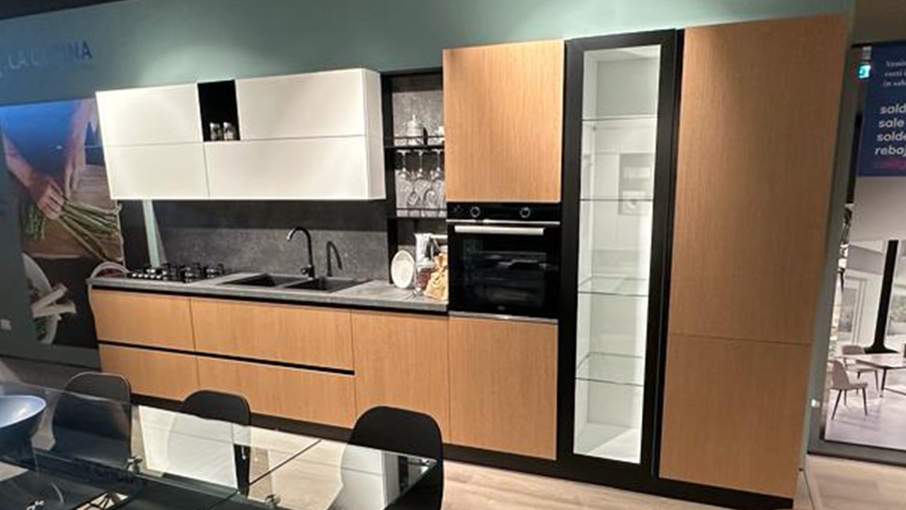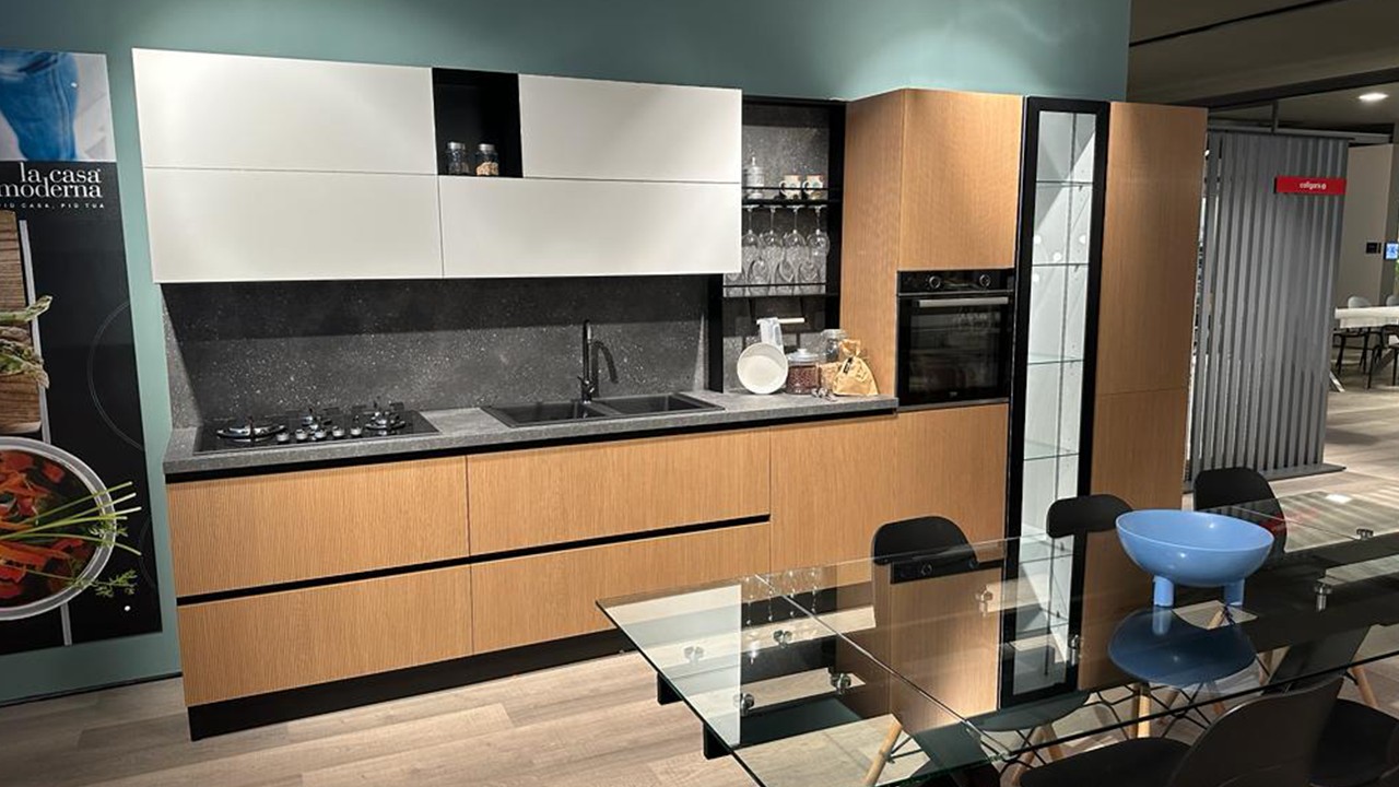 Cucina lineare Pop by Mobilturi in promozione a Cerignola terra rigato e bianco laccato puro.