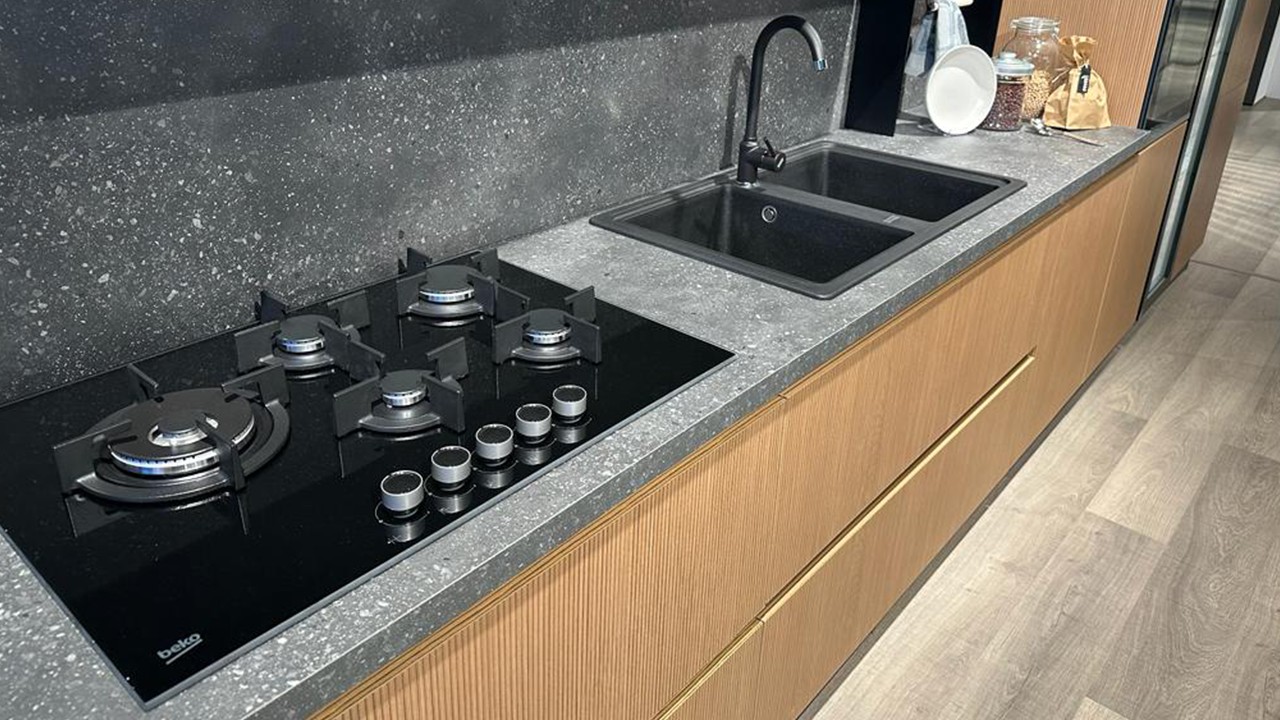 Correlata di tutti gli elettrodomestici Beko, schienale in tinta con il piano lavoro e led in fresata alla colonna vetro.