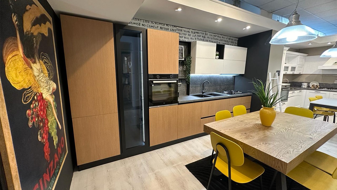 Cucina lineare Pop by Mobilturi in promozione a Cerignola terra rigato e bianco laccato puro.