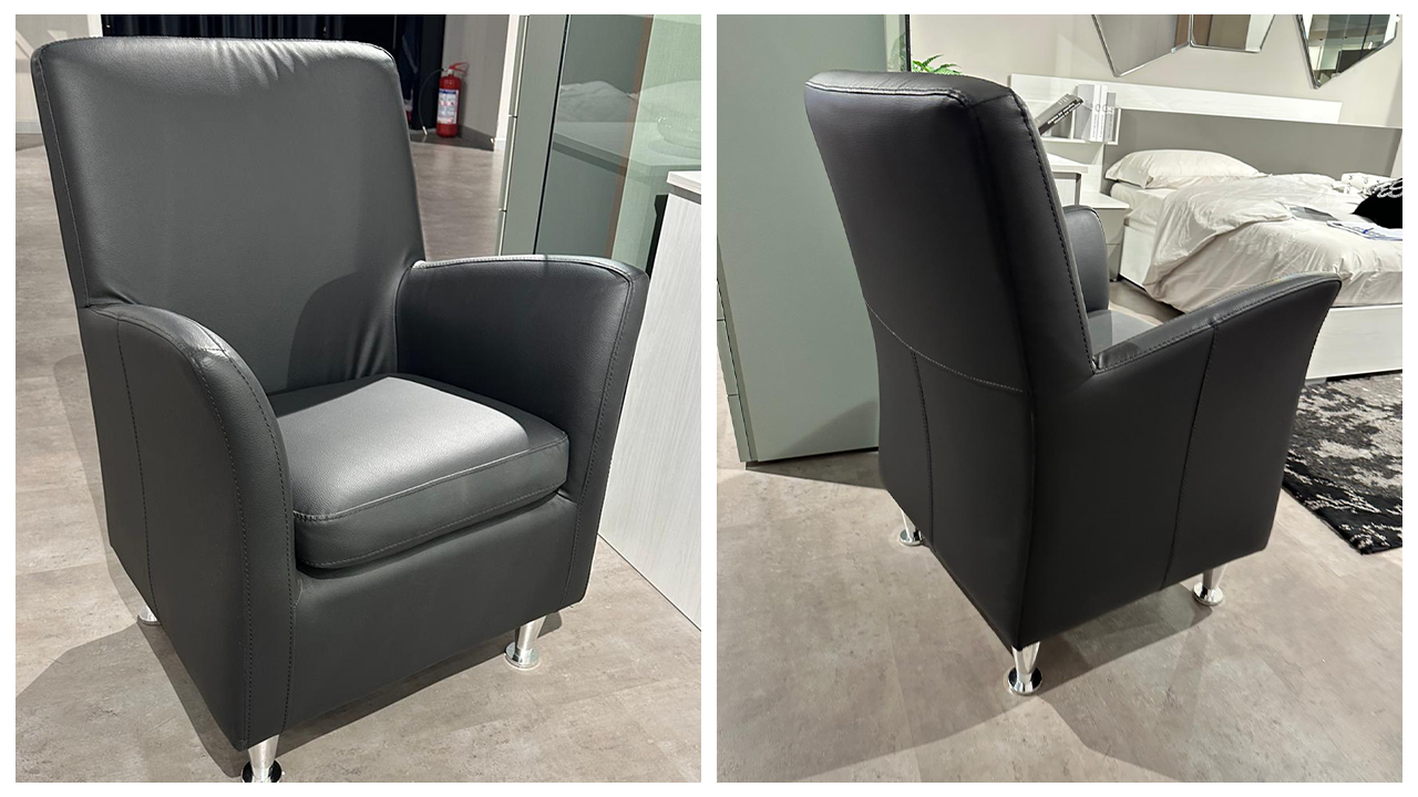 Poltrona rivestita in ecopelle nera disponibile all'interno dello Store di Cerignola (FG), in promozione a: € 600,03