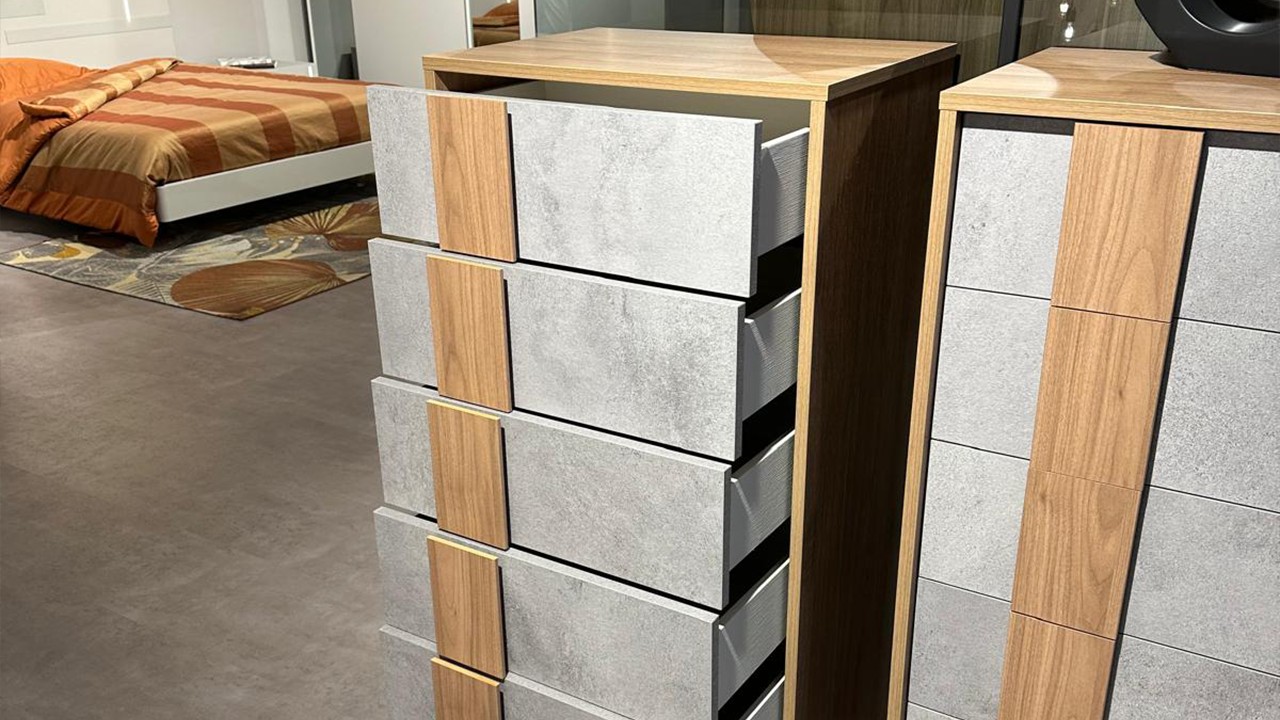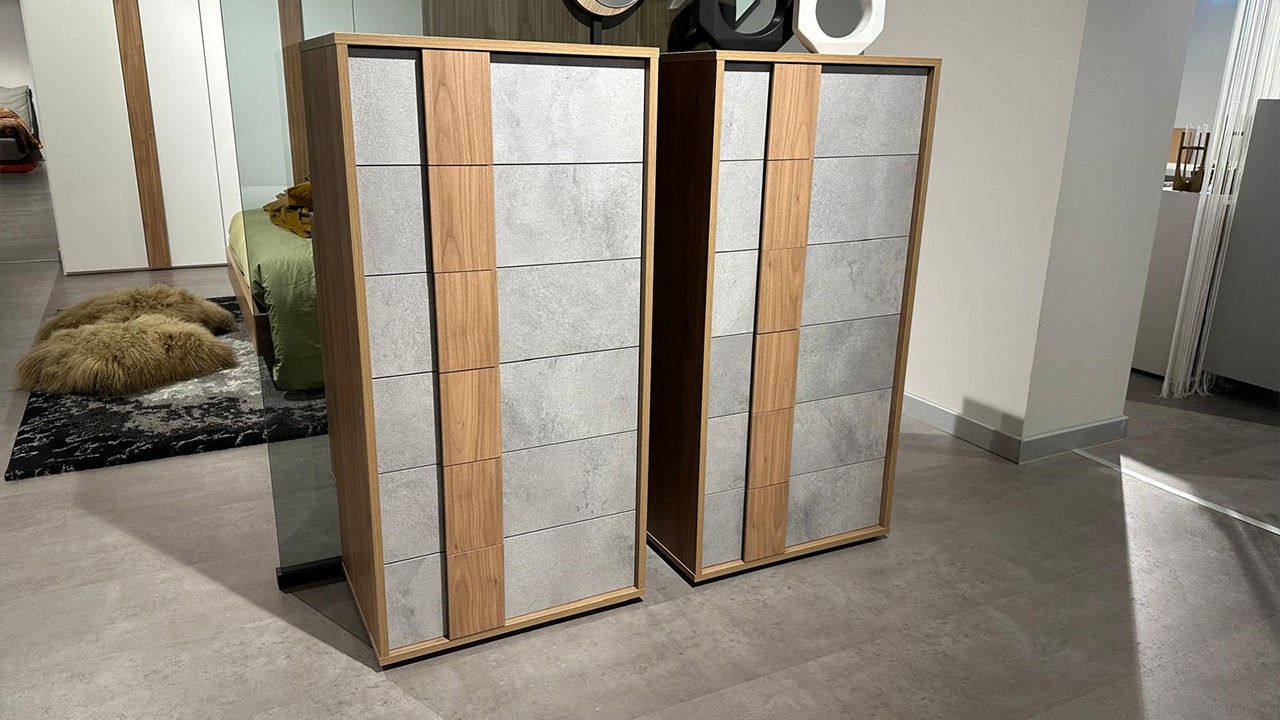 Settimino Road in promozione all'interno dello Store di Cerignola (FG), con struttura in finitura noce biondo e frontali ardesia cemento.