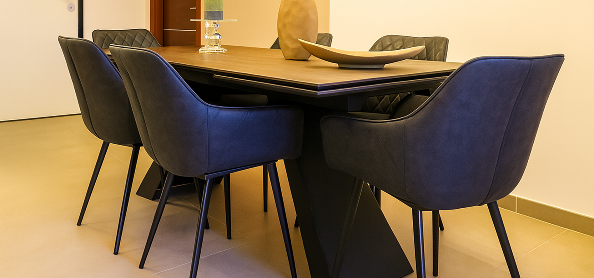 Dal relax sul divano alle cene attorno al tavolo, in legno con poltroncine coordinate.