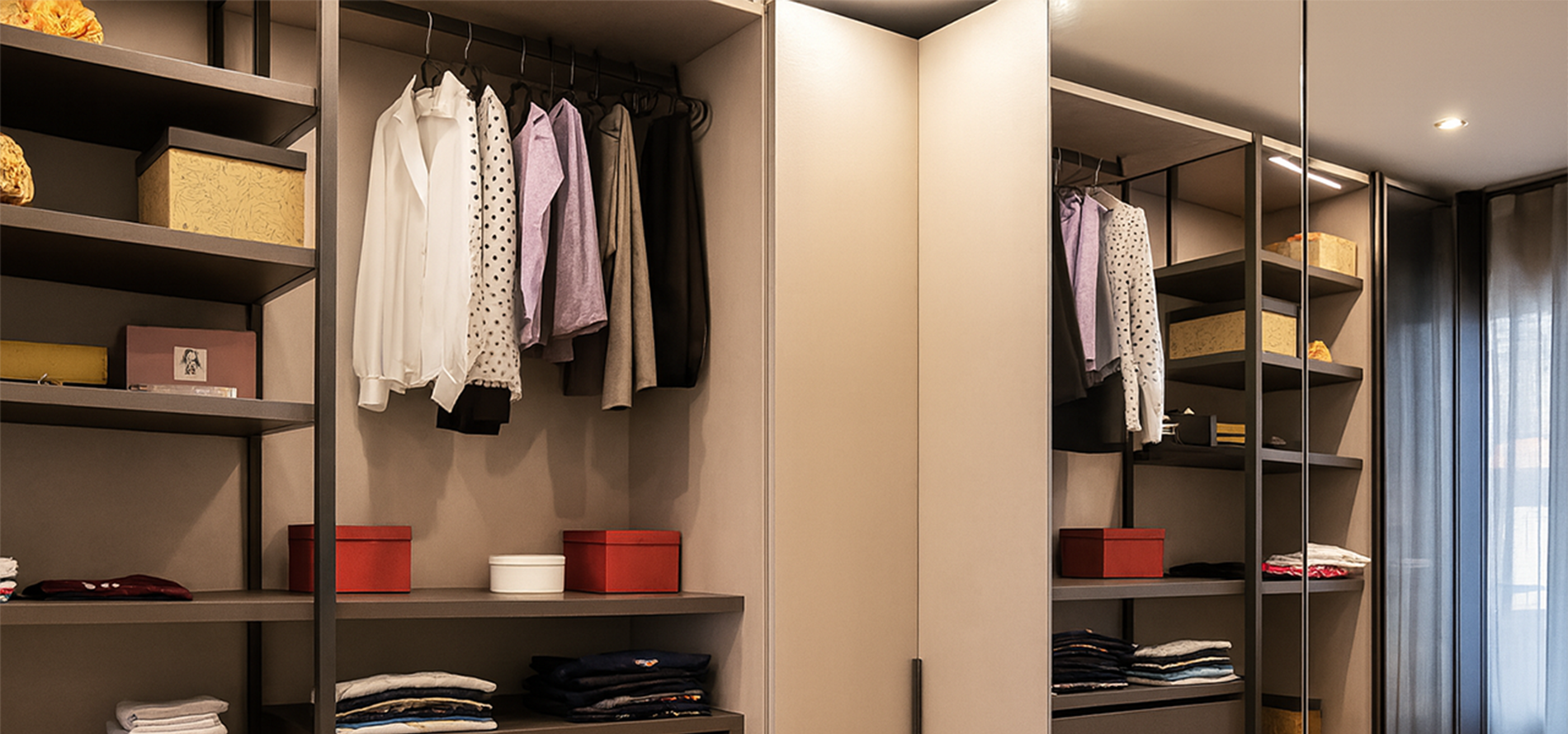 Il comò, ampio e scenografico, introduce alla cabina armadio: uno spazio esclusivo che rappresenta il lusso quotidiano che tutti sogniamo.