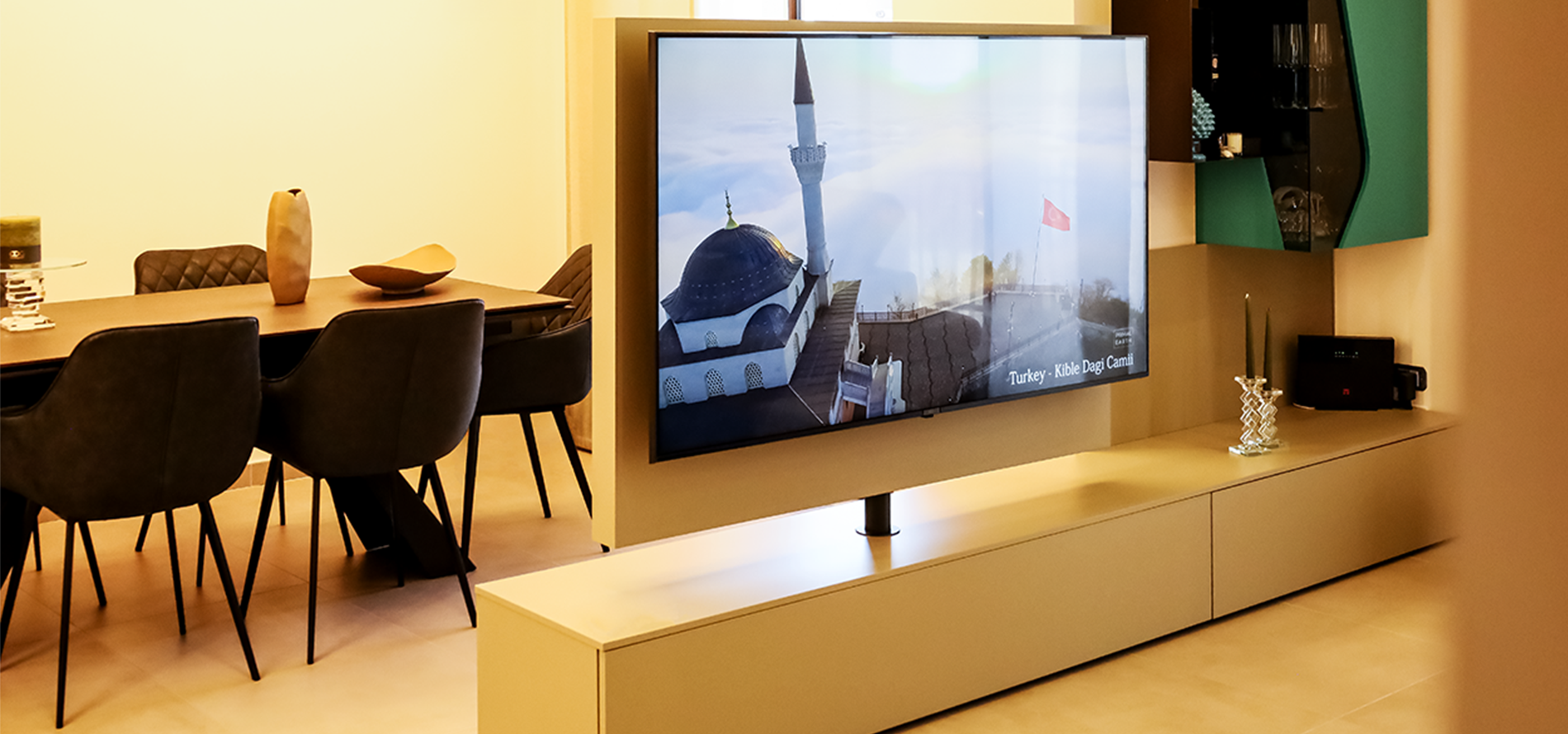 L’elemento TV bifacciale non è solo funzionalità, è armonia che trasforma la libreria in un’esperienza di design.