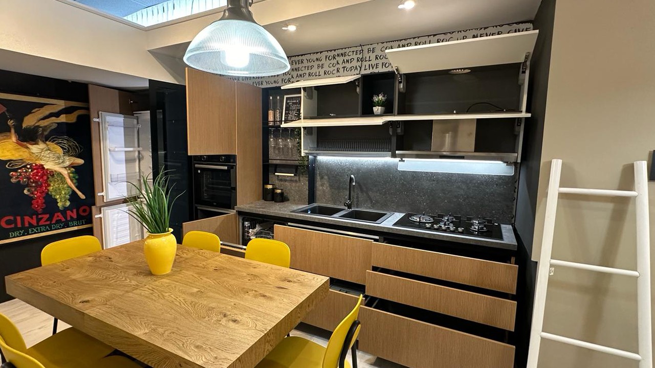 Cucina lineare Pop by Mobilturi in promozione a Cerignola terra rigato e bianco laccato puro.