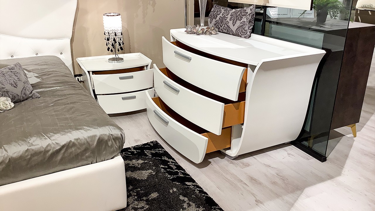Possibilità di acquisto anche separatamente di gruppo contemporaneo in legno tutto laccato bianco opaco con maniglie finitura alluminio
