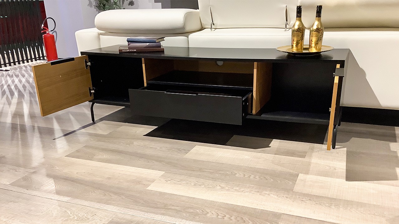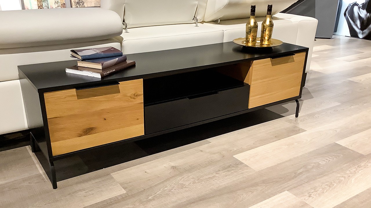 Mobile porta Tv modello ICARUS della collezione firmata da La Casa Moderna disponibile all'inetrno dello Store di Cerignola (FG) nella colorazione nero e rovere.