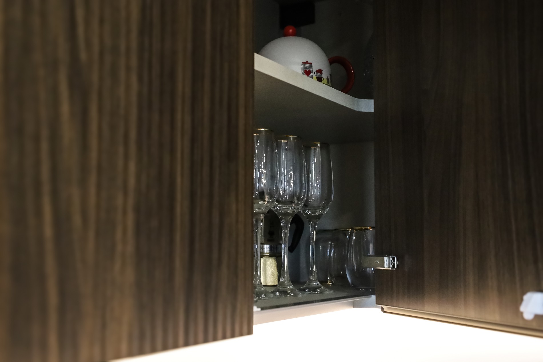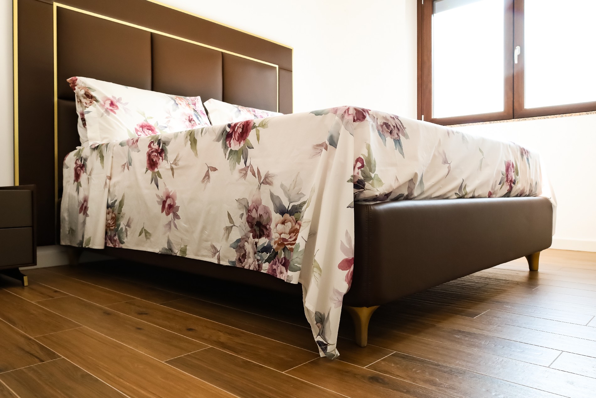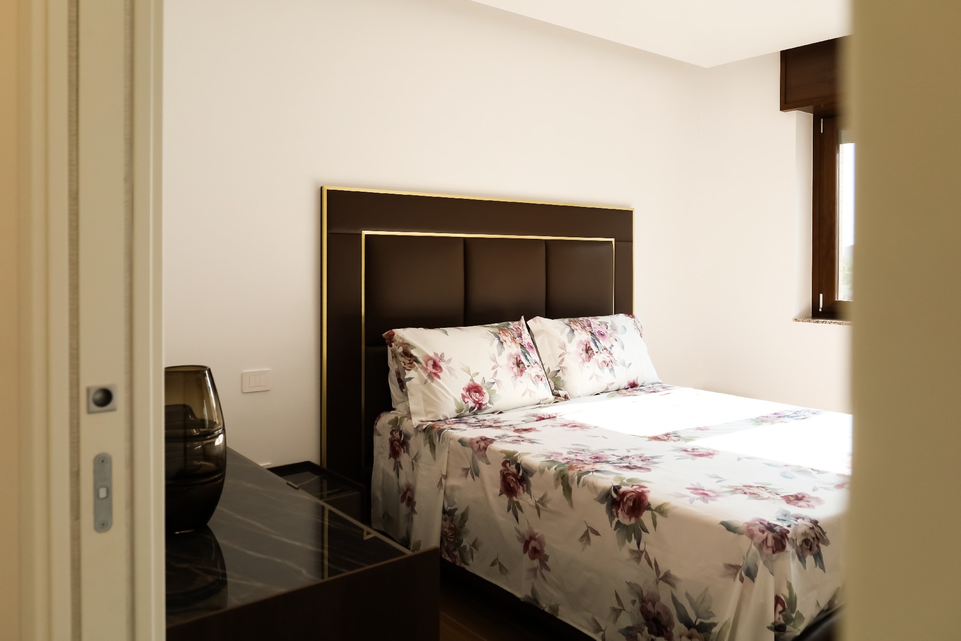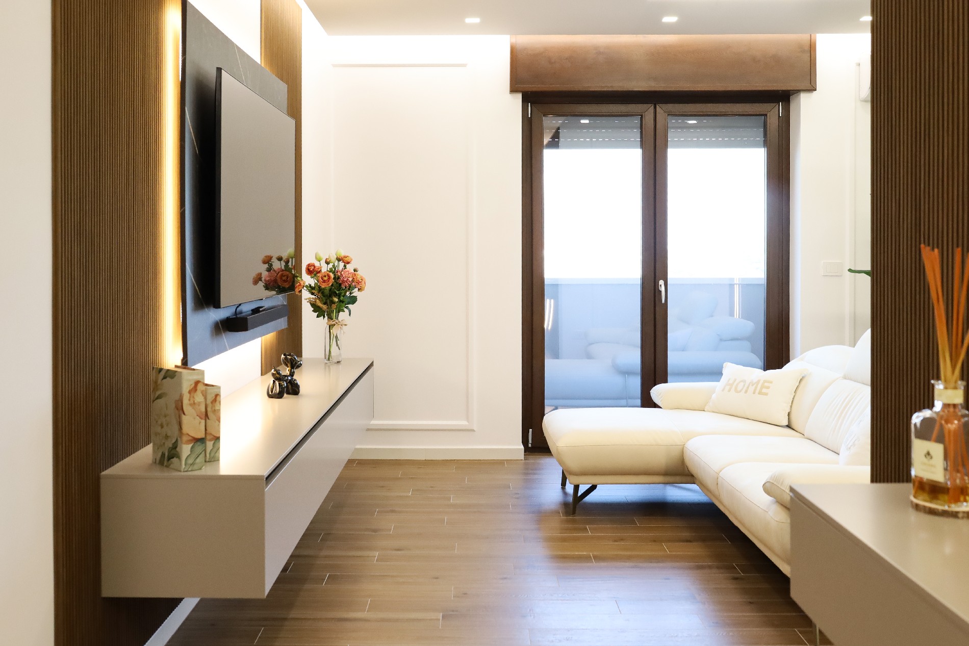 Torna indietro Un angolo di fascino Home / Progetti realizzati/ Un angolo di fascino Con questo progetto, il nostro team di arredatori si è immerso nella quotidianità di una giovane coppia, che ci ha affidato il compito, e l'onore, di trasformare la loro casa in un autentico angolo di fascino. Appena varcata la soglia, si viene accolti da un ingresso elegante e dallo stile contemporaneo, impreziosito dal pannello decorativo che caratterizza l'intero living. Proseguendo, si accede a un ambiente unico, dove spiccano la parete Mood Day e il divano Avery, entrambi firmati La Casa Moderna, che donano carattere e armonia allo spazio.Le sedie, rivestite in microfibra effetto velluto verde, aggiungono una nota di colore che ravviva l’ambiente, senza però togliere protagonismo alla raffinata finitura del piano del tavolo, il quale, all’occorrenza, si apre con un semplice gesto.Proseguendo, si viene proiettati nella zona cucina, dove il modello Oyster Pro firmata VENETA CUCINE nella finitura Silk Marron Avana si abbina armoniosamente al Noce Scuro Riga Dek. Il tutto è coordinato dal piano di lavoro Caranto in quarzo, spessore 2 cm, finitura Cassiopea, che richiama elegantemente sia il piano del tavolo che il pannello porta TV, creando un piacevole filo conduttore tra gli ambienti.Nella zona notte, il protagonista è il letto rivestito in pelle, impreziosito da dettagli in finitura gold, abbinato al gruppo notte con piano in marmo e piedini in finitura bronzo. La vera sorpresa, però, è la cabina armadio: celata dietro due eleganti porte scorrevoli in vetro stopsol, è attrezzata con illuminazione a LED in fresata nei fianchi, che valorizza ogni vano, e comprende anche un modulo dedicato per l’organizzazione delle scarpe.Vuoi arredare casa? Contattaci e fissa un appuntamento con un nostro consulente d'arredo. Clicca qui!