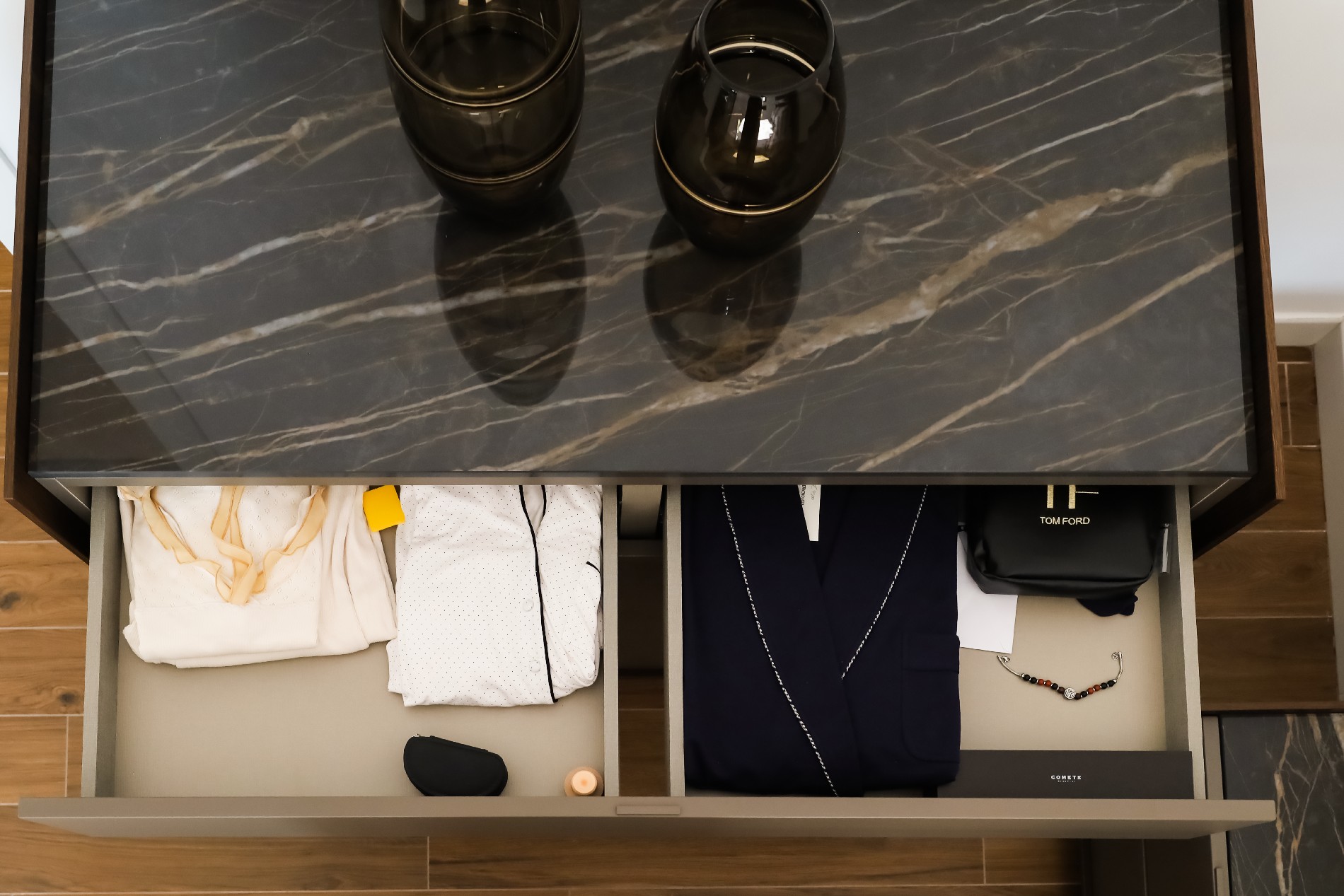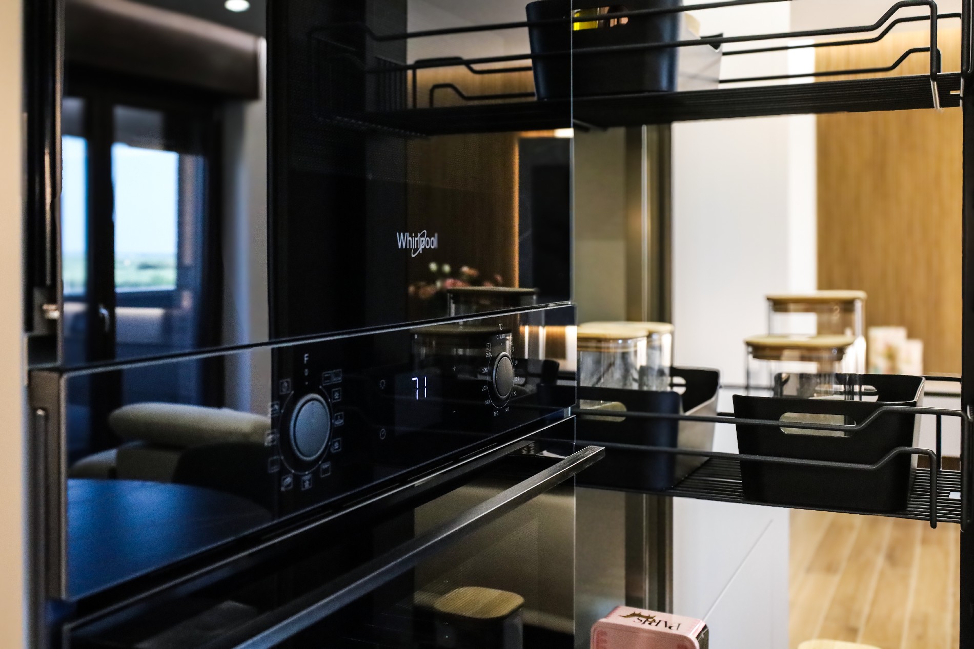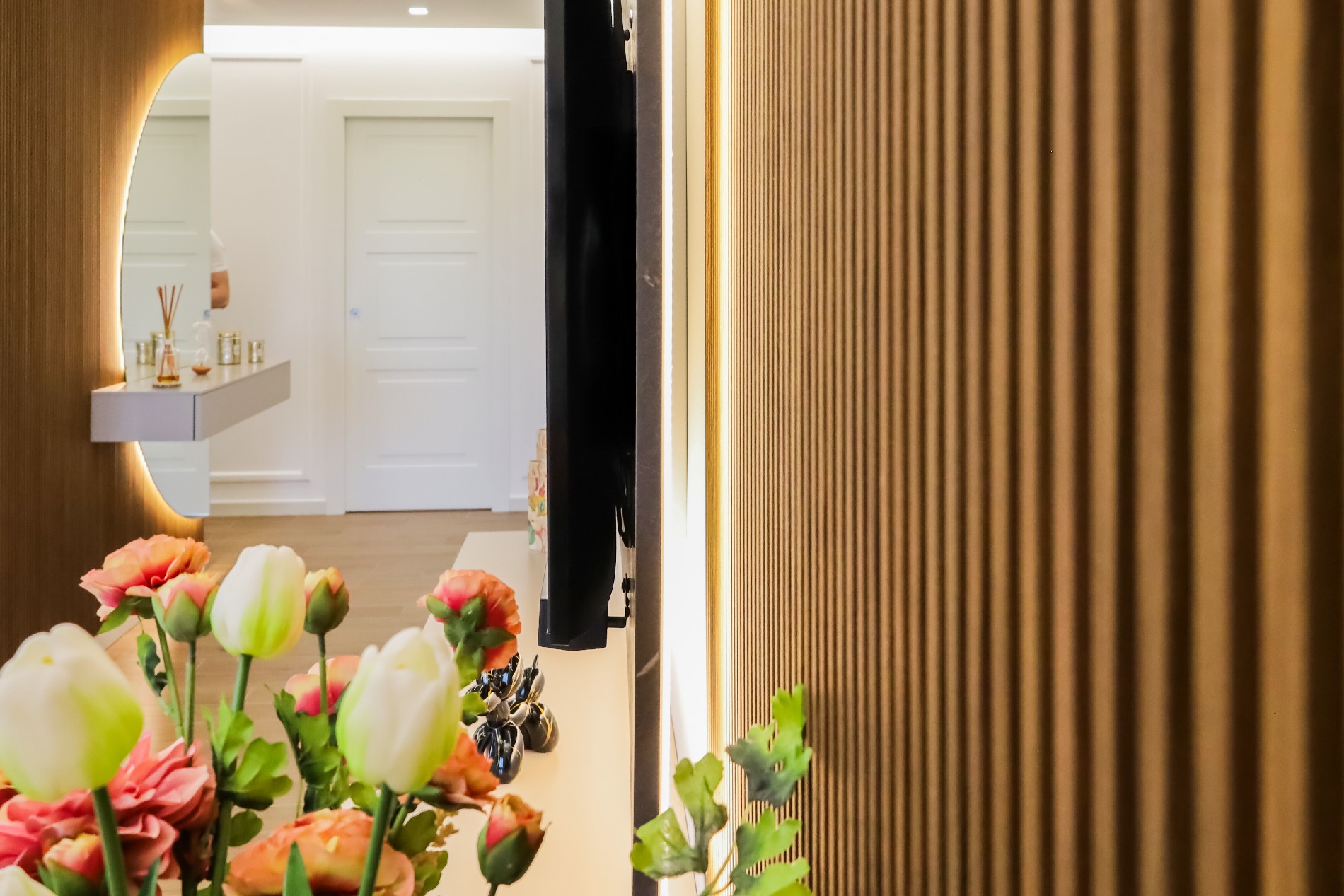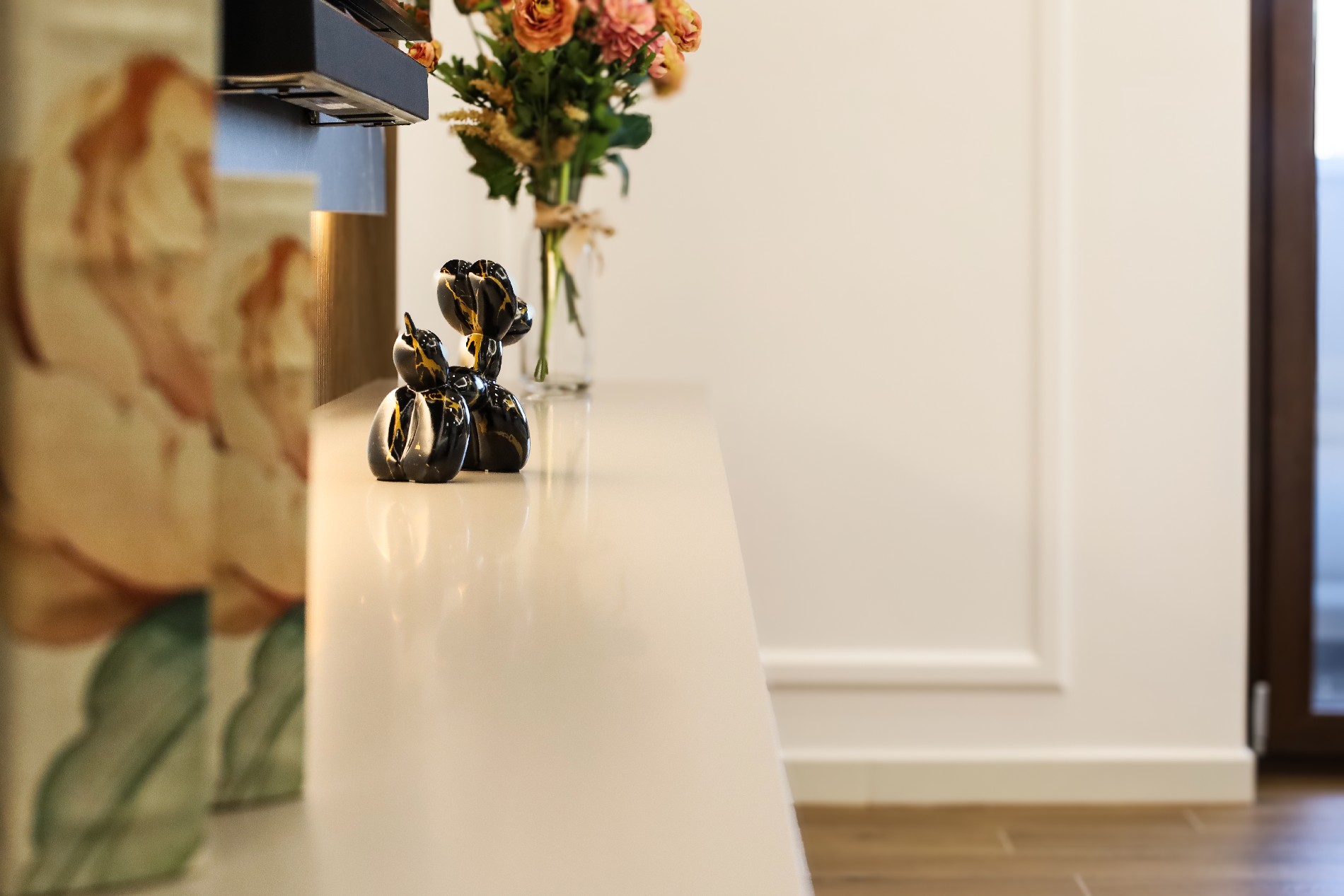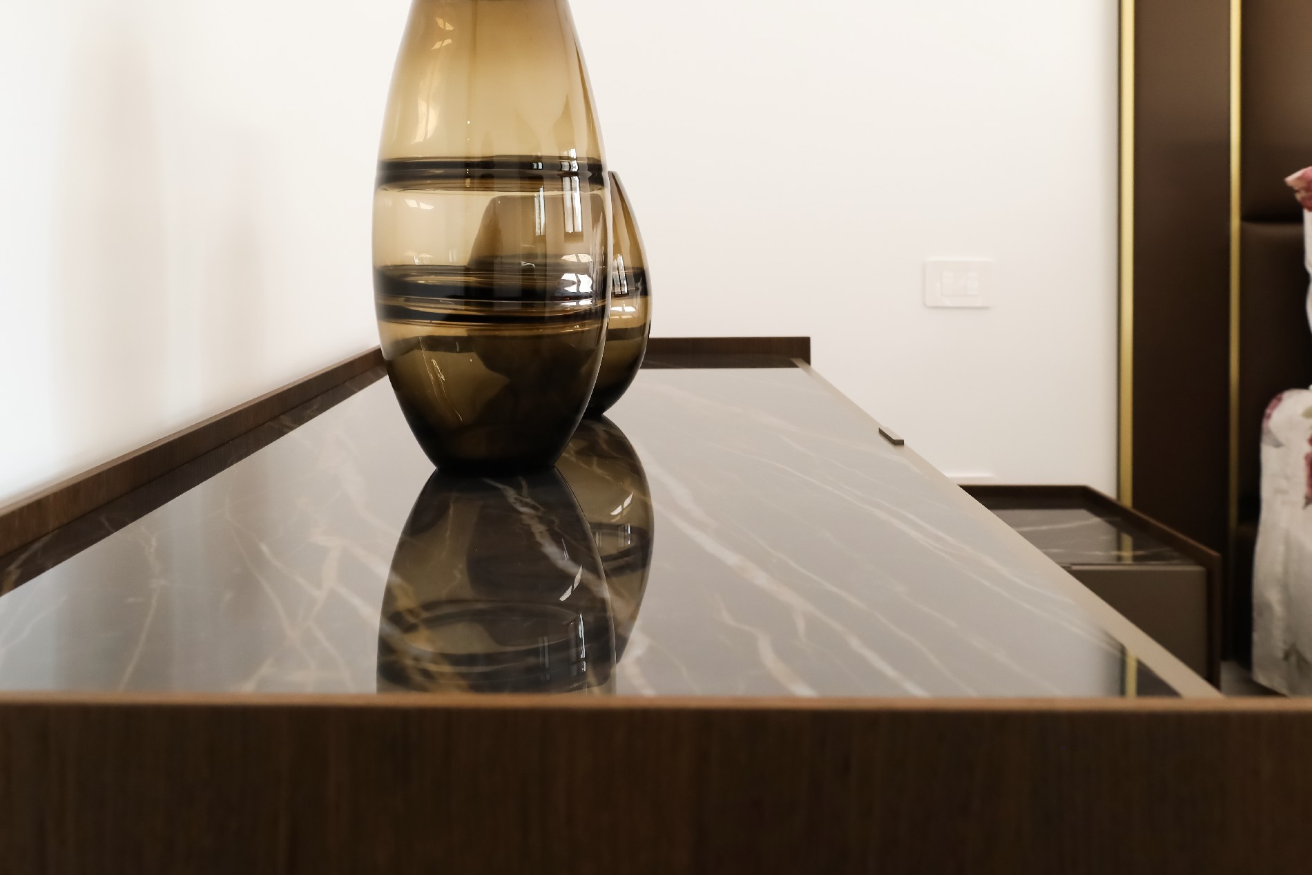 Torna indietro Un angolo di fascino Home / Progetti realizzati/ Un angolo di fascino Con questo progetto, il nostro team di arredatori si è immerso nella quotidianità di una giovane coppia, che ci ha affidato il compito, e l'onore, di trasformare la loro casa in un autentico angolo di fascino. Appena varcata la soglia, si viene accolti da un ingresso elegante e dallo stile contemporaneo, impreziosito dal pannello decorativo che caratterizza l'intero living. Proseguendo, si accede a un ambiente unico, dove spiccano la parete Mood Day e il divano Avery, entrambi firmati La Casa Moderna, che donano carattere e armonia allo spazio.Le sedie, rivestite in microfibra effetto velluto verde, aggiungono una nota di colore che ravviva l’ambiente, senza però togliere protagonismo alla raffinata finitura del piano del tavolo, il quale, all’occorrenza, si apre con un semplice gesto.Proseguendo, si viene proiettati nella zona cucina, dove il modello Oyster Pro firmata VENETA CUCINE nella finitura Silk Marron Avana si abbina armoniosamente al Noce Scuro Riga Dek. Il tutto è coordinato dal piano di lavoro Caranto in quarzo, spessore 2 cm, finitura Cassiopea, che richiama elegantemente sia il piano del tavolo che il pannello porta TV, creando un piacevole filo conduttore tra gli ambienti.Nella zona notte, il protagonista è il letto rivestito in pelle, impreziosito da dettagli in finitura gold, abbinato al gruppo notte con piano in marmo e piedini in finitura bronzo. La vera sorpresa, però, è la cabina armadio: celata dietro due eleganti porte scorrevoli in vetro stopsol, è attrezzata con illuminazione a LED in fresata nei fianchi, che valorizza ogni vano, e comprende anche un modulo dedicato per l’organizzazione delle scarpe.Vuoi arredare casa? Contattaci e fissa un appuntamento con un nostro consulente d'arredo. Clicca qui!
