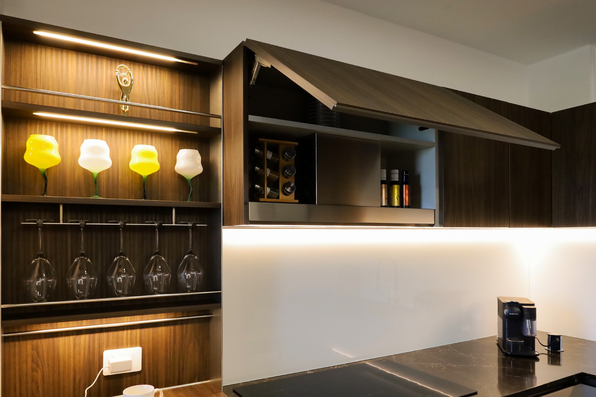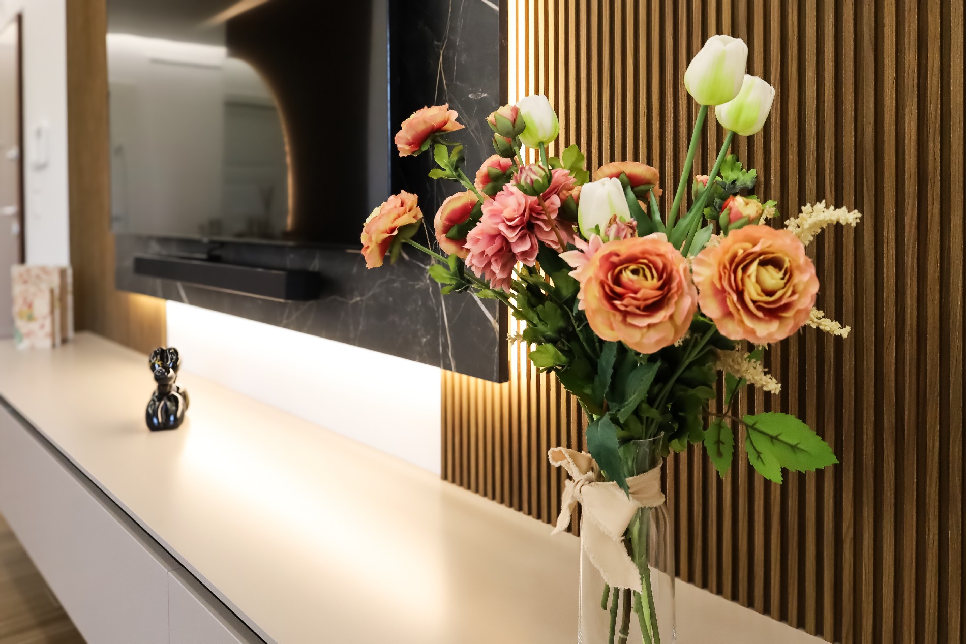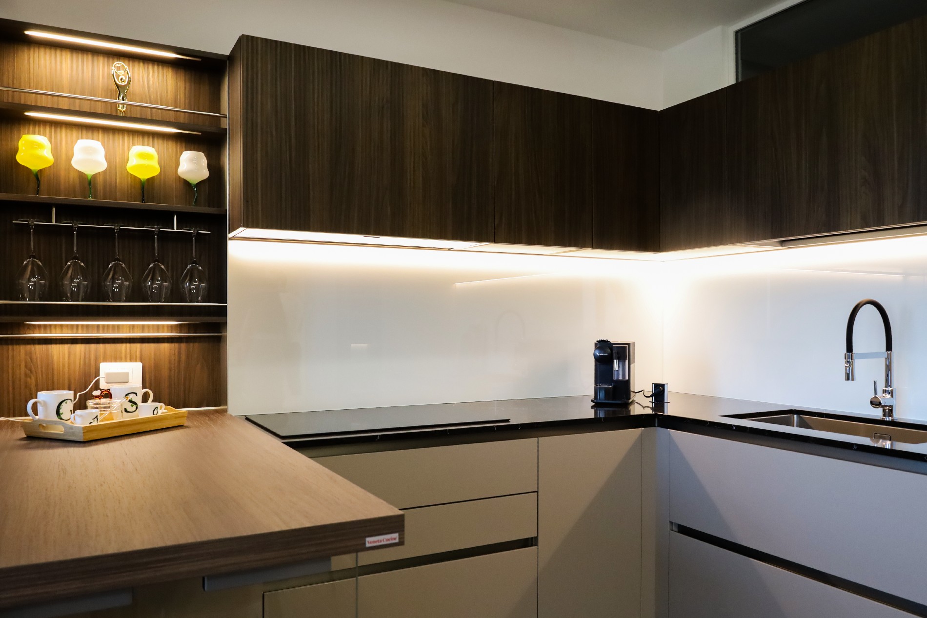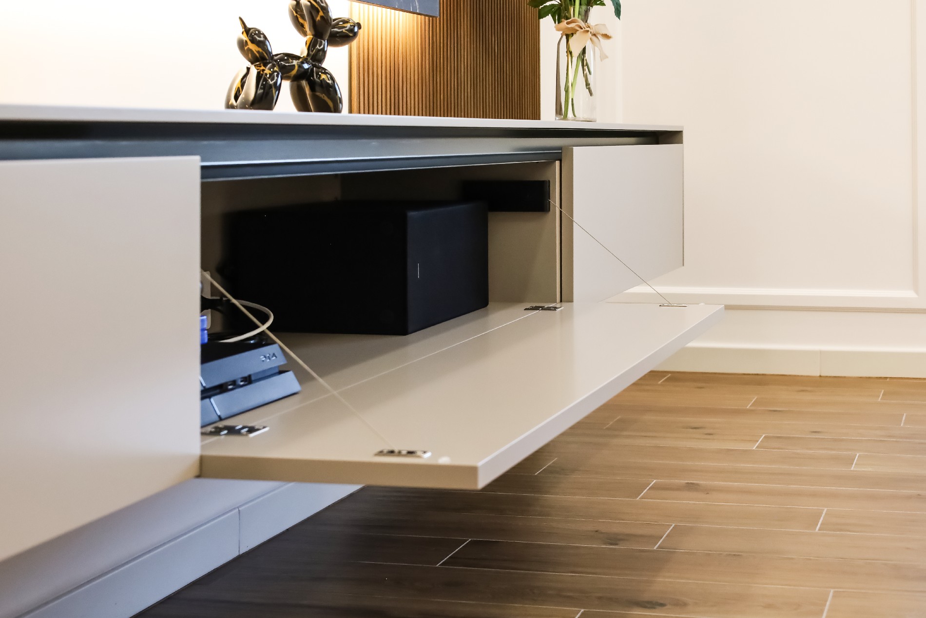 Torna indietro Un angolo di fascino Home / Progetti realizzati/ Un angolo di fascino Con questo progetto, il nostro team di arredatori si è immerso nella quotidianità di una giovane coppia, che ci ha affidato il compito, e l'onore, di trasformare la loro casa in un autentico angolo di fascino. Appena varcata la soglia, si viene accolti da un ingresso elegante e dallo stile contemporaneo, impreziosito dal pannello decorativo che caratterizza l'intero living. Proseguendo, si accede a un ambiente unico, dove spiccano la parete Mood Day e il divano Avery, entrambi firmati La Casa Moderna, che donano carattere e armonia allo spazio.Le sedie, rivestite in microfibra effetto velluto verde, aggiungono una nota di colore che ravviva l’ambiente, senza però togliere protagonismo alla raffinata finitura del piano del tavolo, il quale, all’occorrenza, si apre con un semplice gesto.Proseguendo, si viene proiettati nella zona cucina, dove il modello Oyster Pro firmata VENETA CUCINE nella finitura Silk Marron Avana si abbina armoniosamente al Noce Scuro Riga Dek. Il tutto è coordinato dal piano di lavoro Caranto in quarzo, spessore 2 cm, finitura Cassiopea, che richiama elegantemente sia il piano del tavolo che il pannello porta TV, creando un piacevole filo conduttore tra gli ambienti.Nella zona notte, il protagonista è il letto rivestito in pelle, impreziosito da dettagli in finitura gold, abbinato al gruppo notte con piano in marmo e piedini in finitura bronzo. La vera sorpresa, però, è la cabina armadio: celata dietro due eleganti porte scorrevoli in vetro stopsol, è attrezzata con illuminazione a LED in fresata nei fianchi, che valorizza ogni vano, e comprende anche un modulo dedicato per l’organizzazione delle scarpe.Vuoi arredare casa? Contattaci e fissa un appuntamento con un nostro consulente d'arredo. Clicca qui!