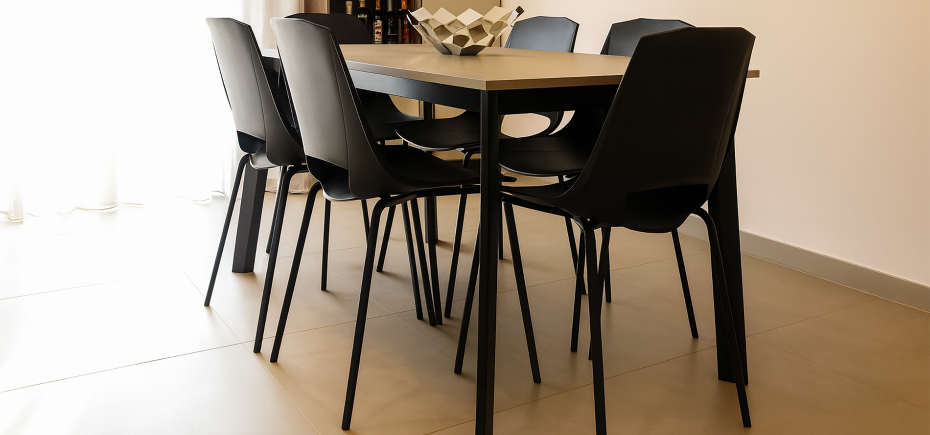Dal relax sul divano alle cene attorno al tavolo, in legno con poltroncine coordinate.