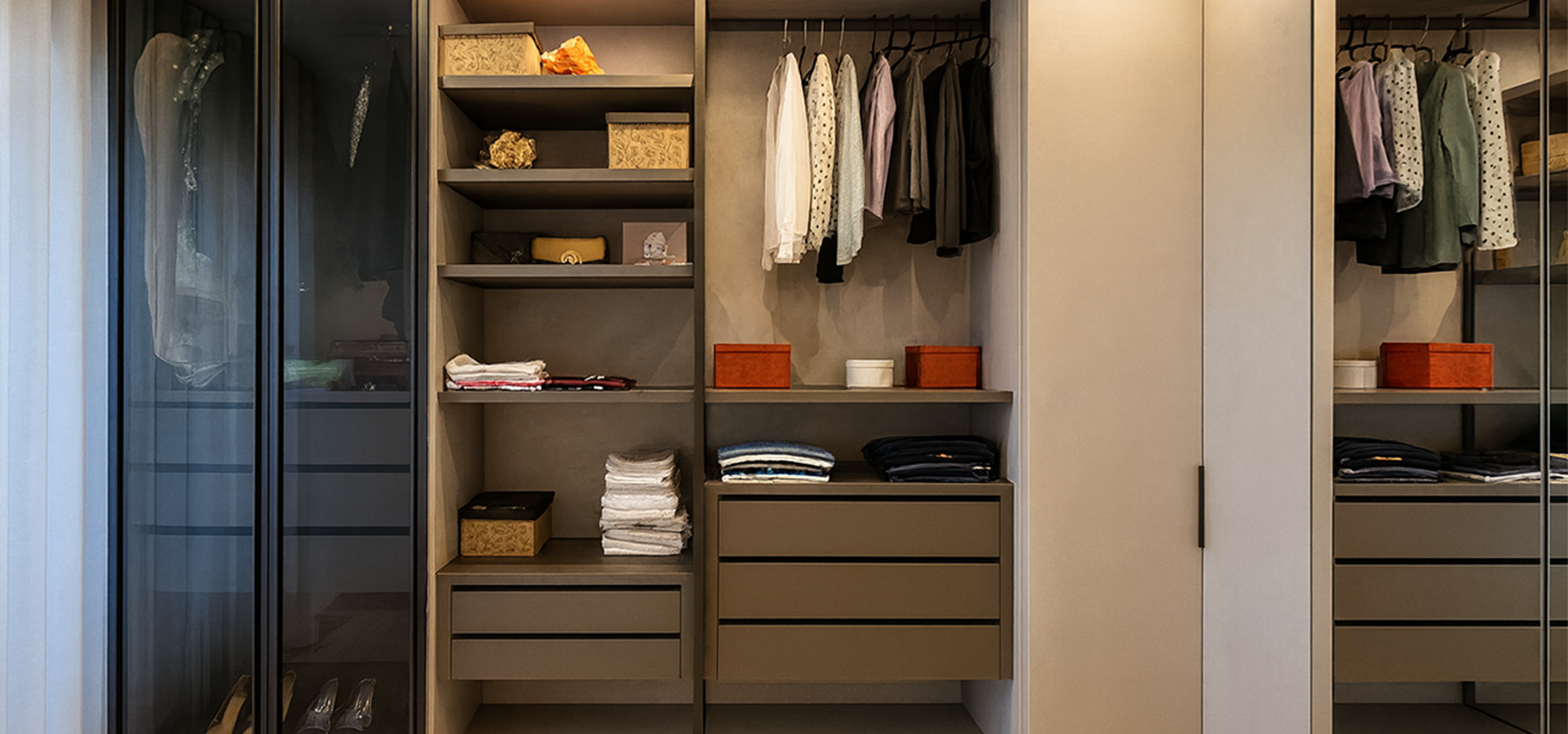Il comò, ampio e scenografico, introduce alla cabina armadio: uno spazio esclusivo che rappresenta il lusso quotidiano che tutti sogniamo.