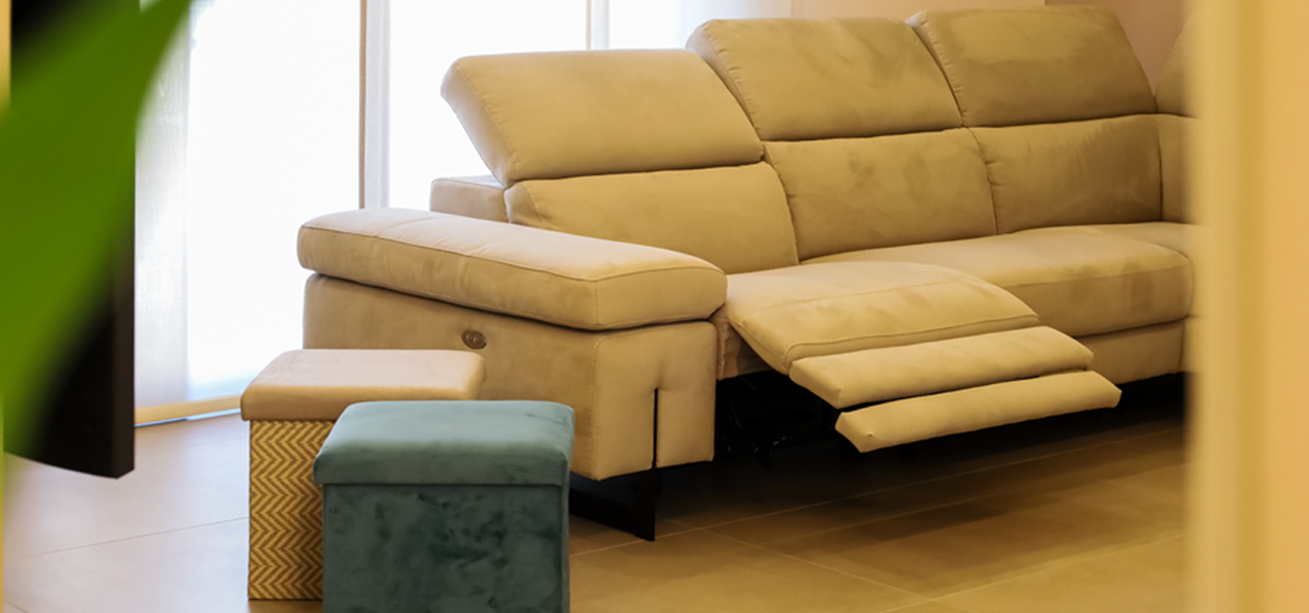 Ampio e avvolgente, il divano angolare in microfibra antimacchia regala al living luminosità e comfort. Un invito a vivere la zona giorno.