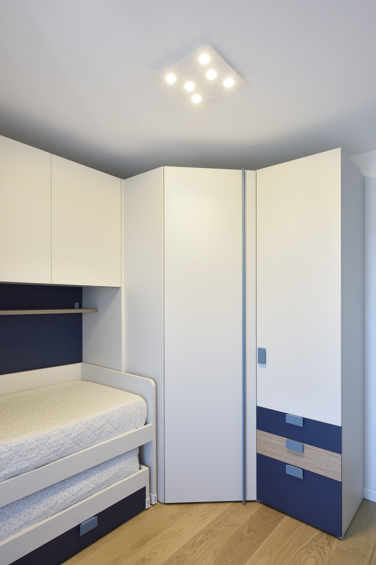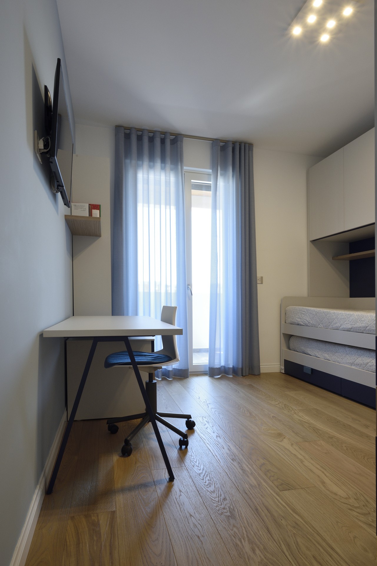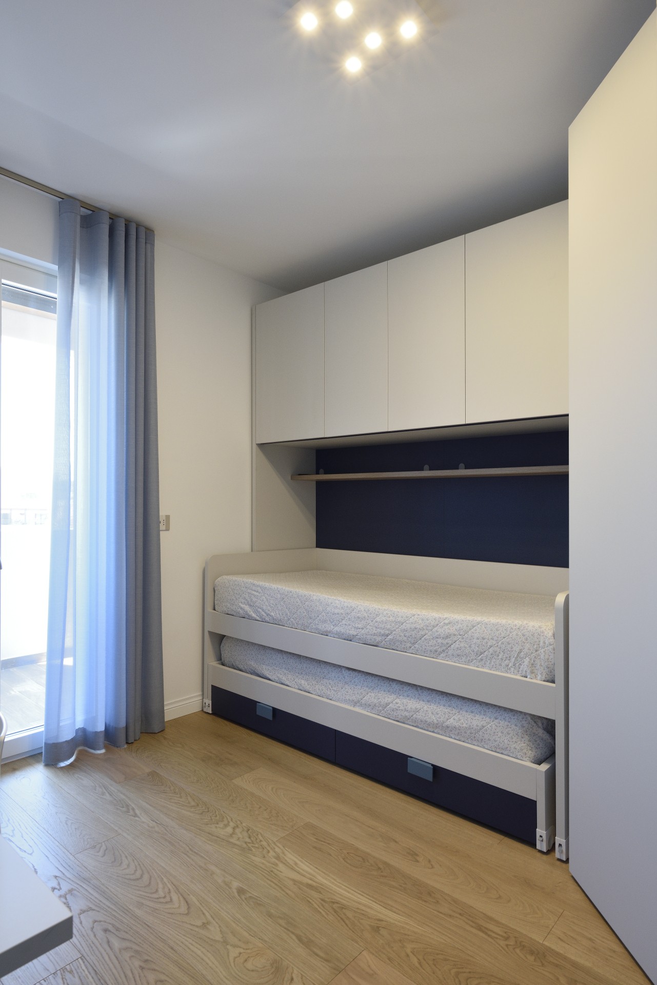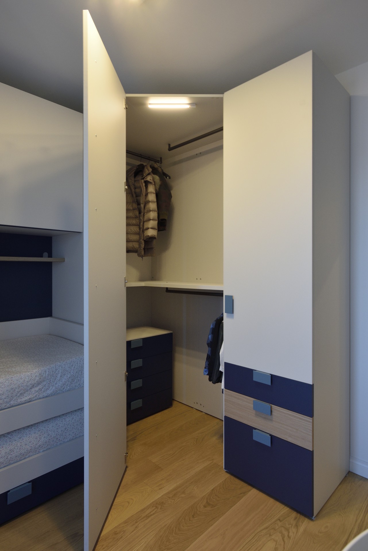 Infine il nostro staff di consulenti d’arredo ha optato per una cameretta firmata La Casa Moderna realizzata con vernici atossiche per la sicurezza dei più piccoli, che con la sua grande versatilità ci ha permesso di inserire una cabina armadio in accostamento al divano letto attrezzato garantendo una capienza adatta anche alle future esigenze.